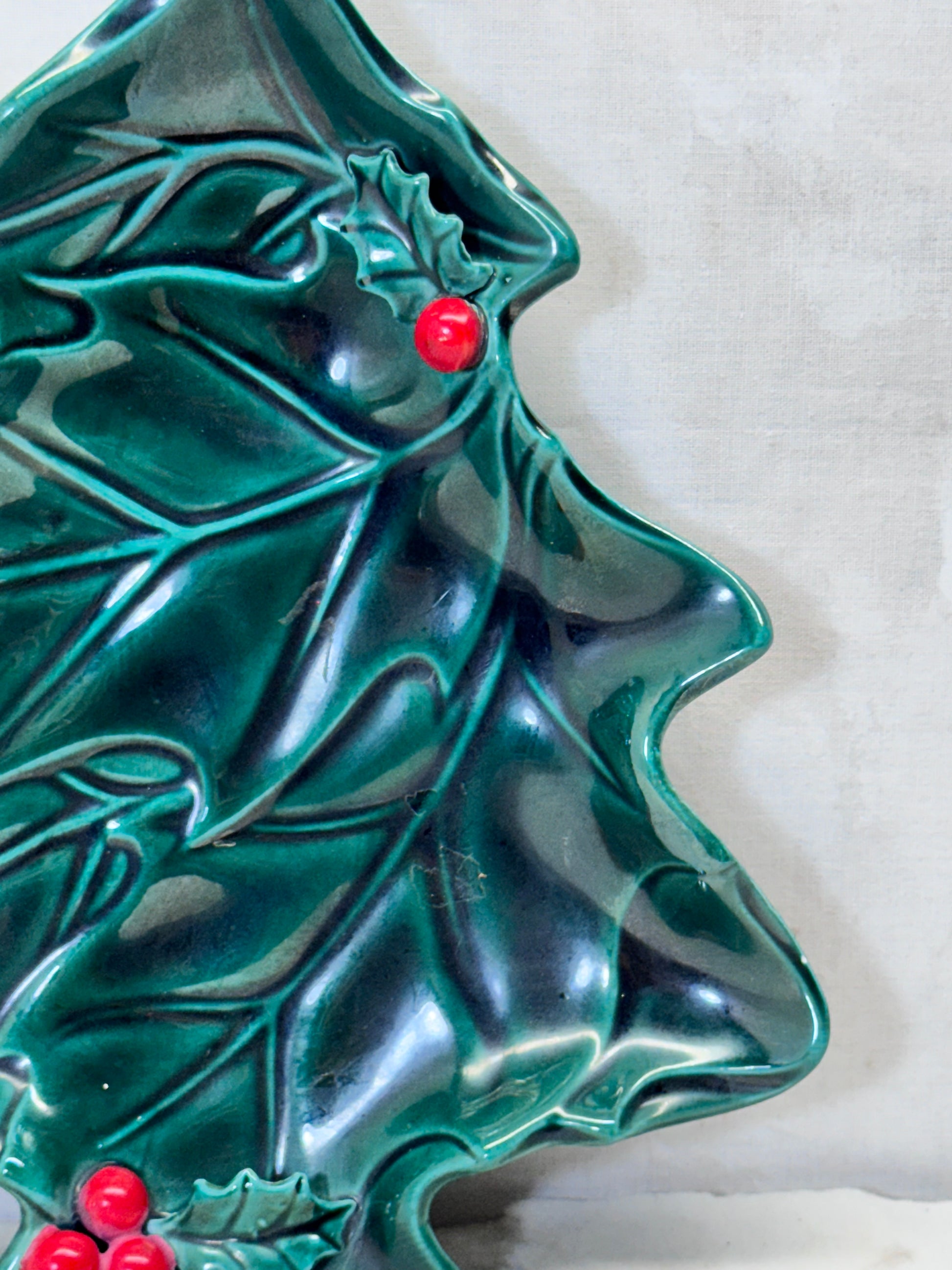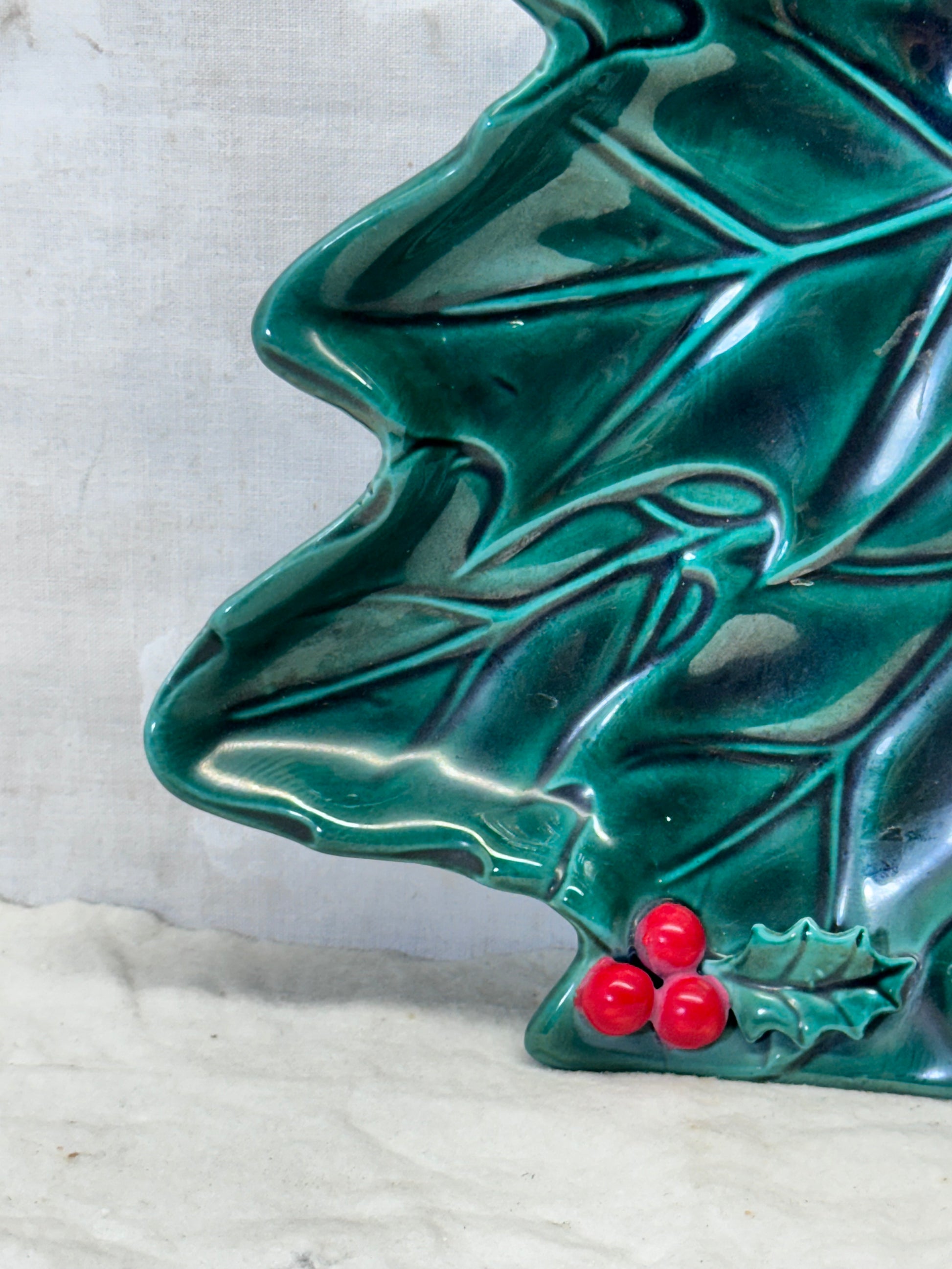 Vintage Lefton Japan Holly Berry Christmas Tray #1745