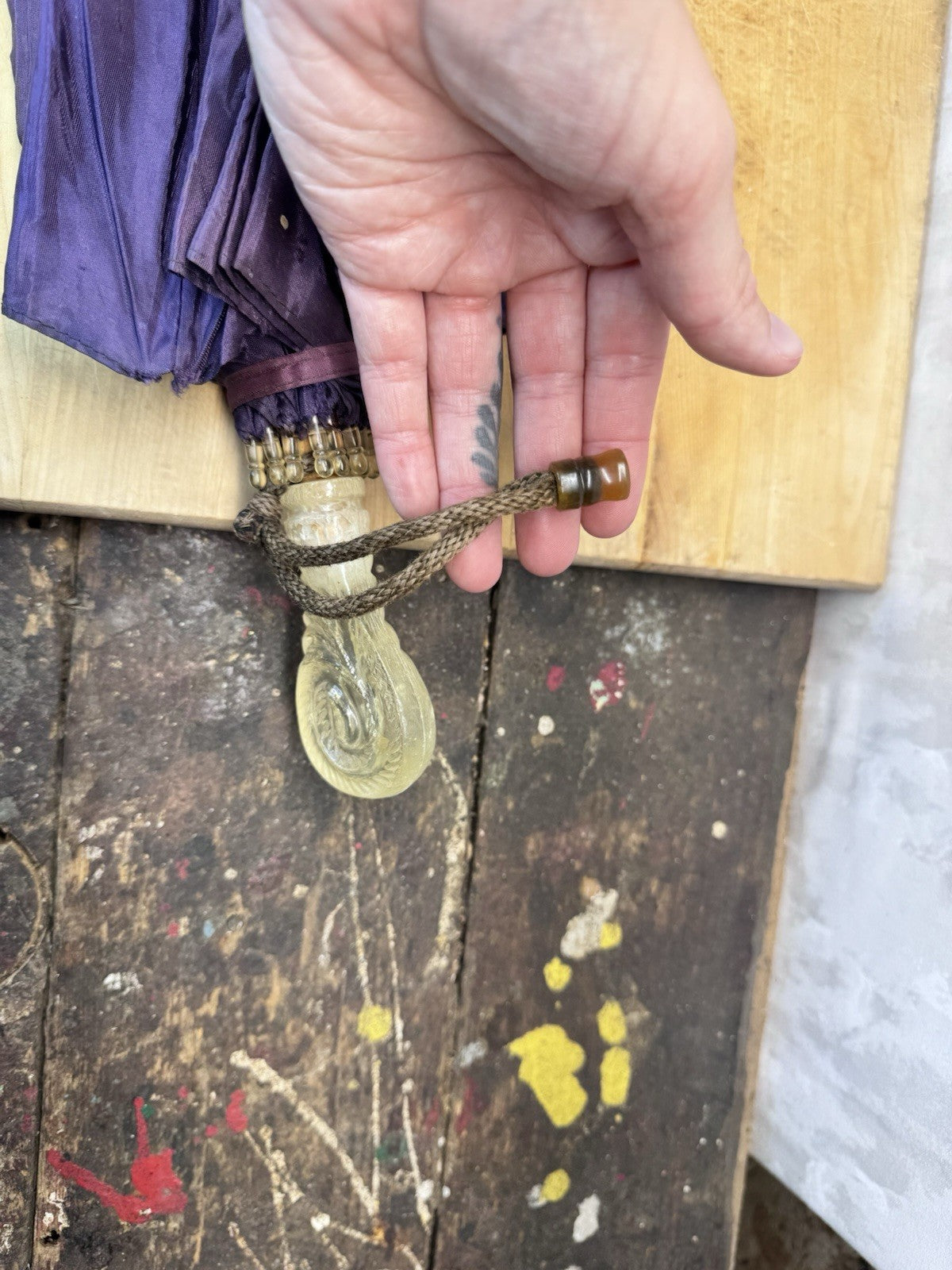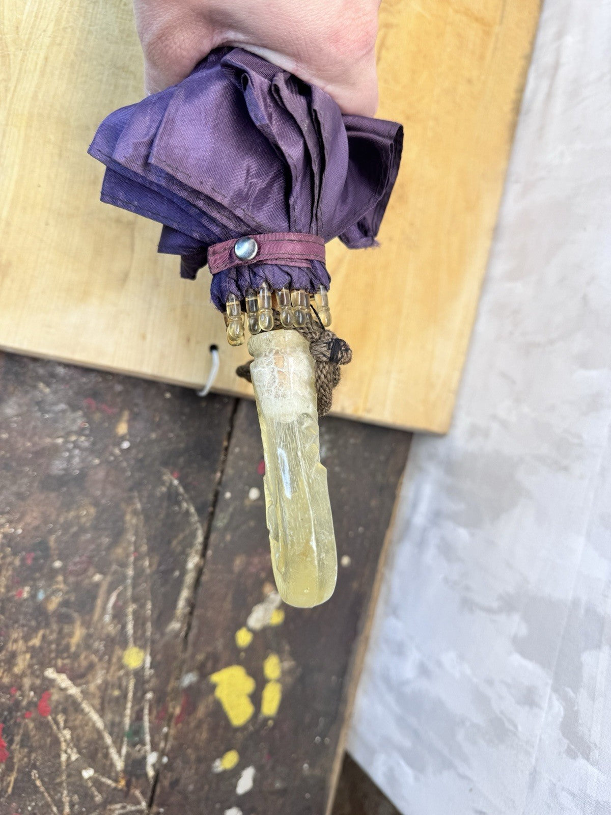 The Vintage Parasol is a unique and stylish accessory that adds a touch of elegance to any outfit. This parasol features a classic design with intricate detailing, making it a standout piece for those who appreciate vintage style. Perfect for adding shade on a sunny day or completing a vintage-inspired look, this parasol is sure to make a statement wherever it is used.