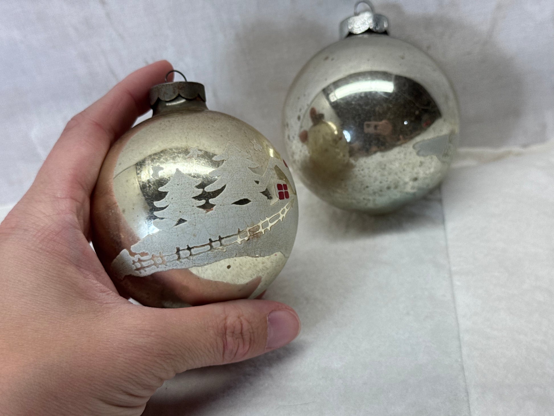 Vintage Shiny Brite Stencil House Glass Ornaments #2158