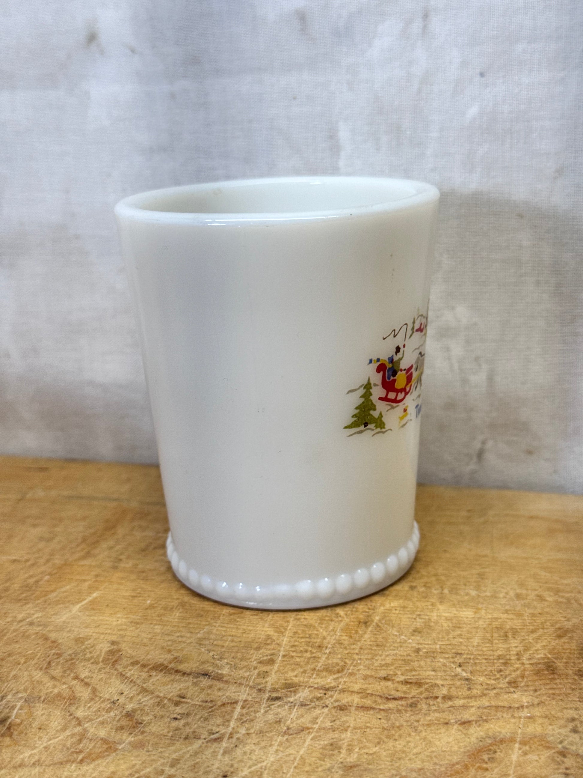 Vtg McKee Tom And Jerry Winter Sleigh Milk Glass Cup #1757