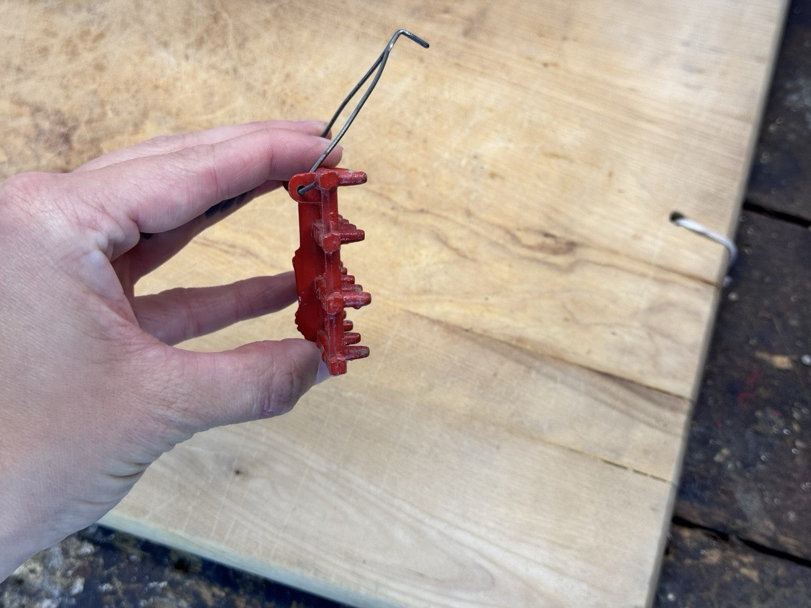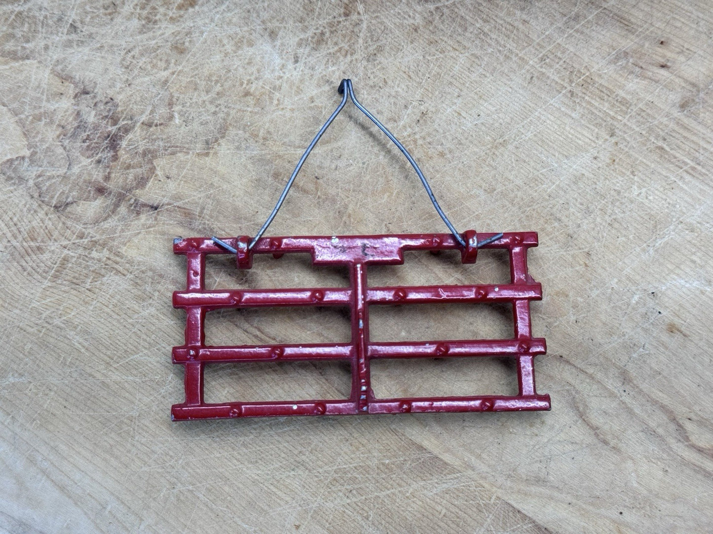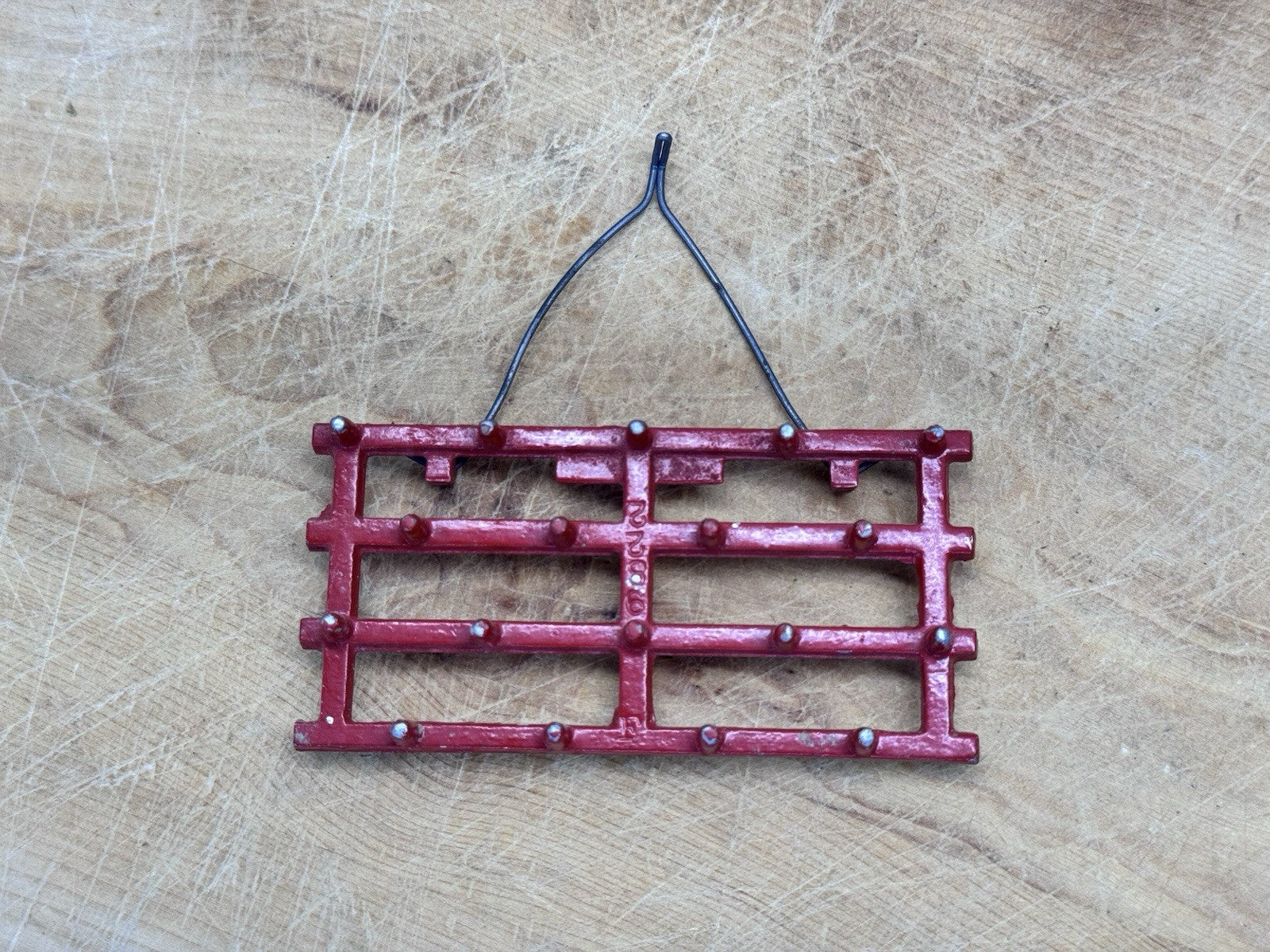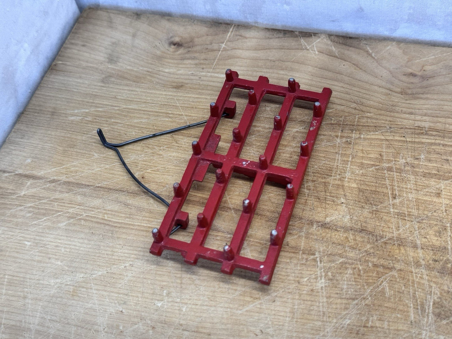 The product is a vintage red tractor toy. It is a diecast farm vehicle, likely representing a sense of nostalgia for those who appreciate classic toy vehicles. The red color adds a fun and vibrant touch to the toy, making it a unique collectible item for enthusiasts of vintage farm equipment.