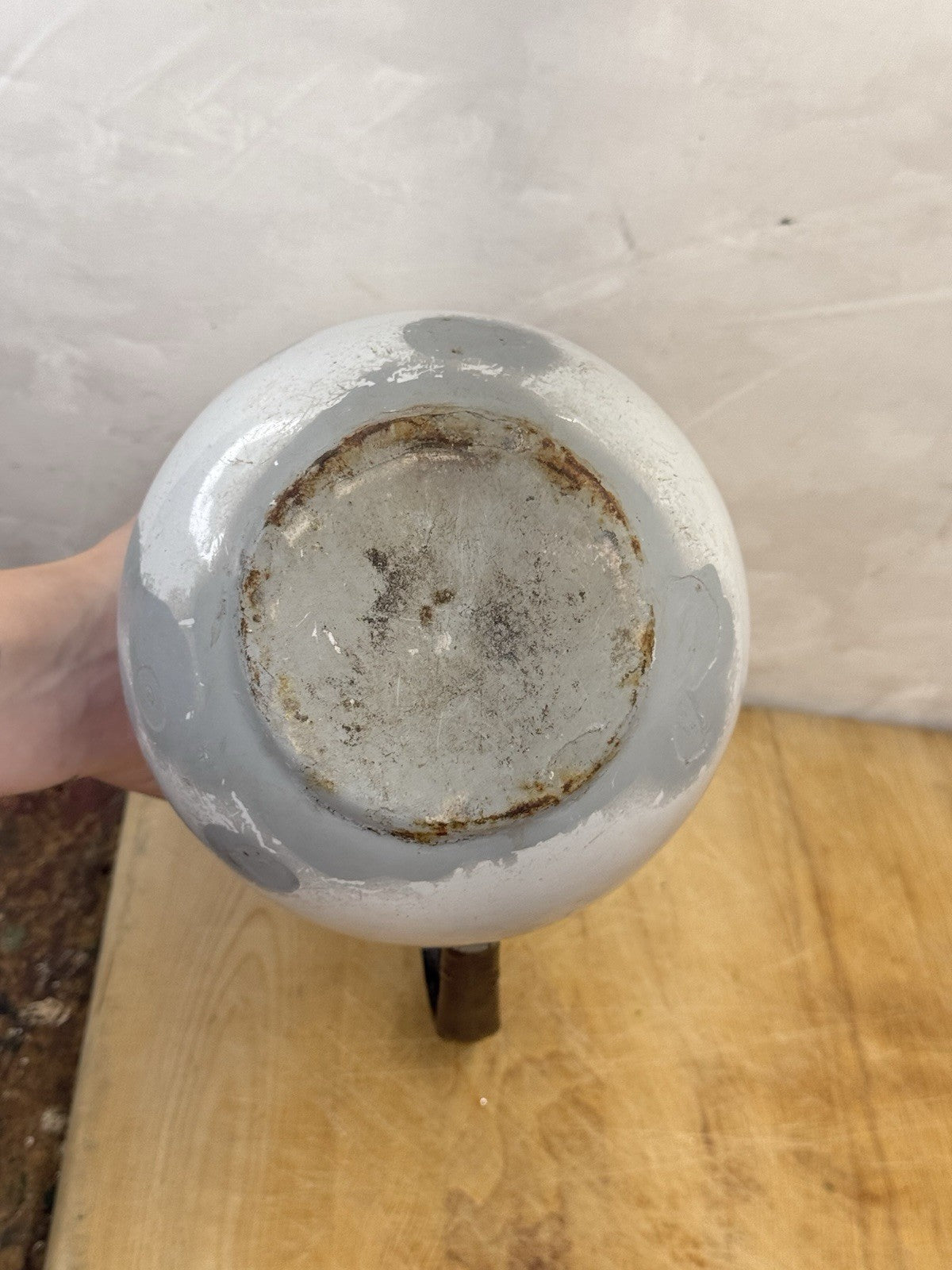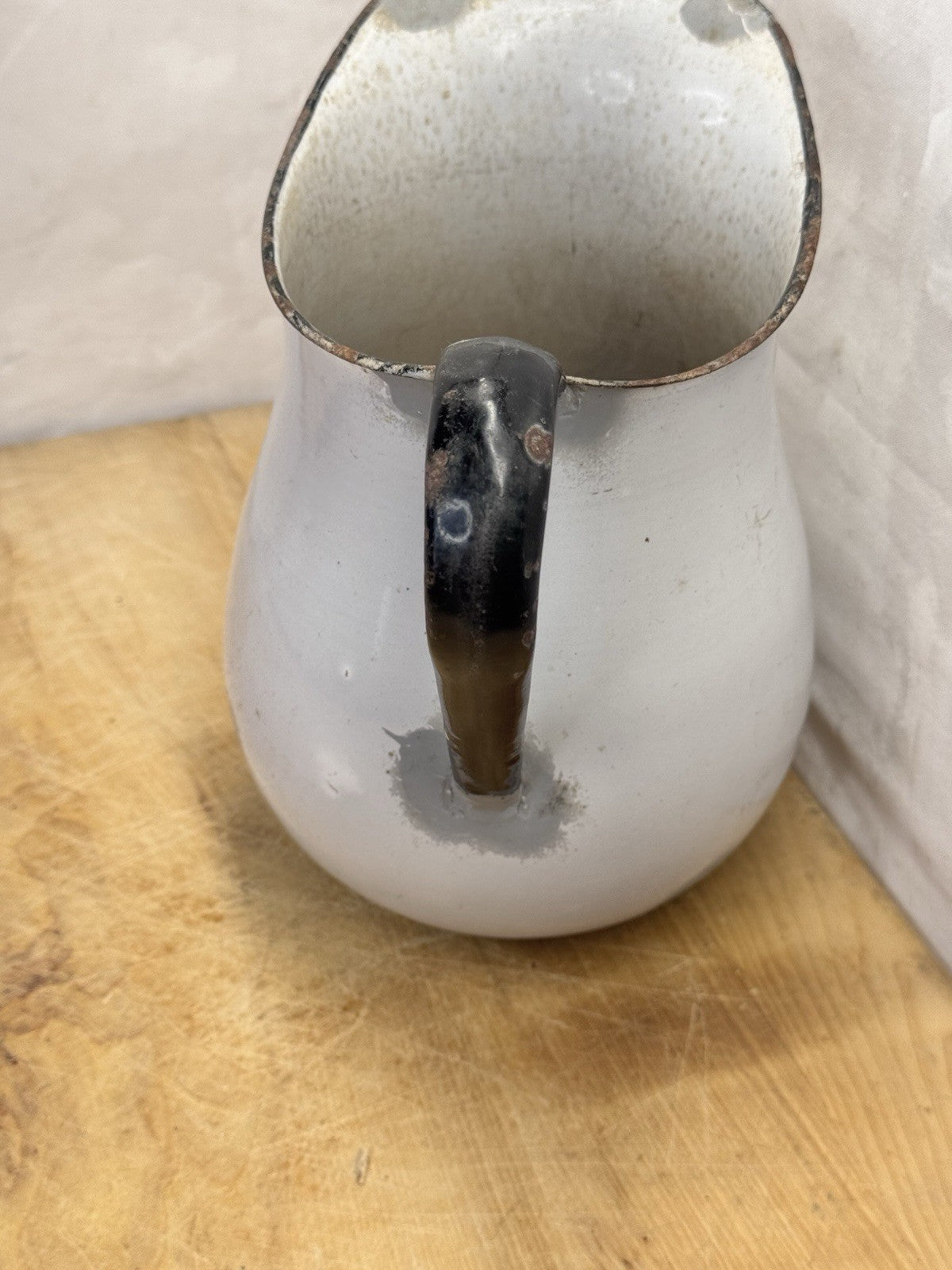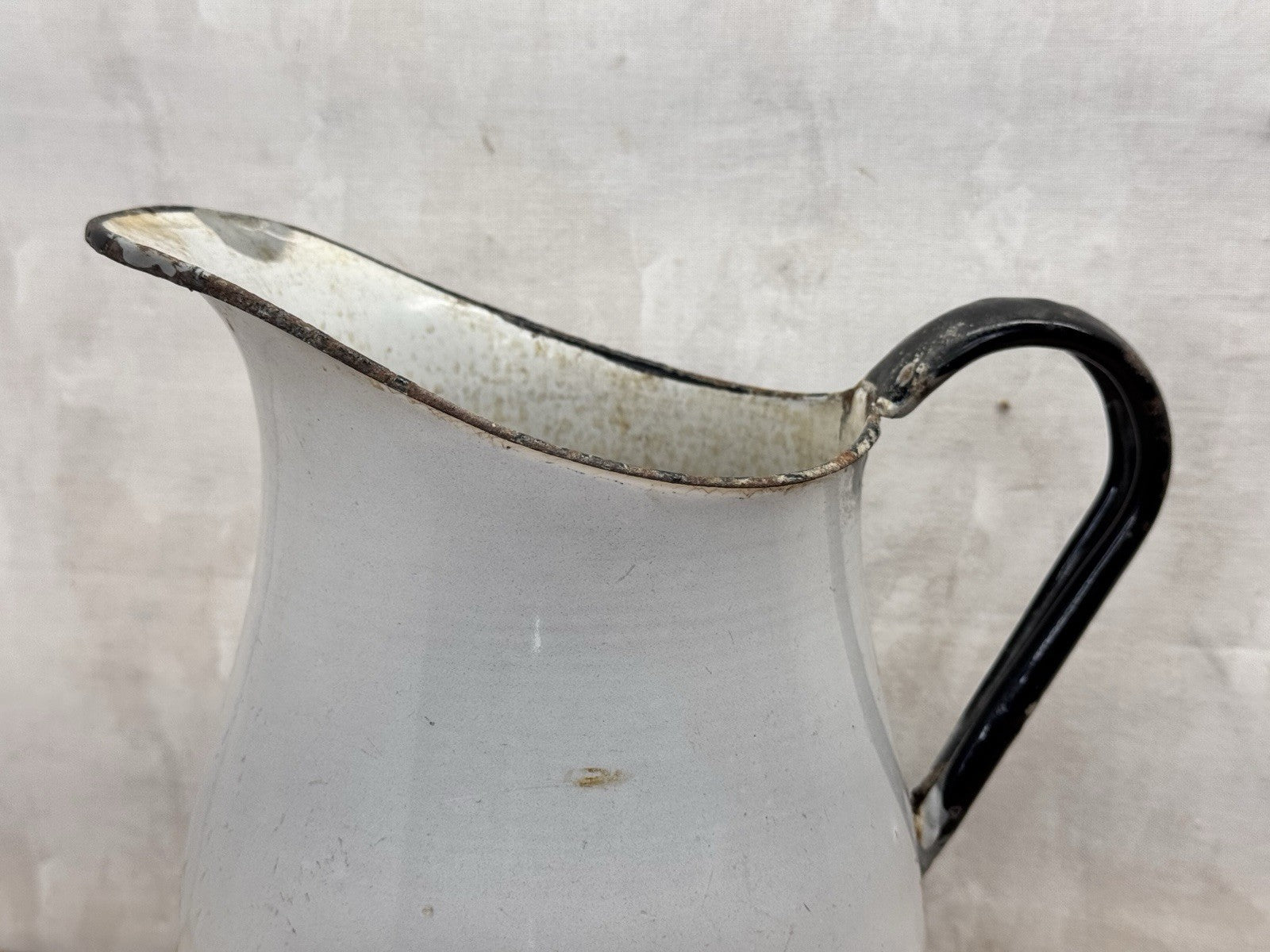 The White Enamel Pitcher Antique is a vintage piece that exudes charm and elegance with its antique style design. Made of enamel in a classic white color, this pitcher is not only functional for serving beverages but also serves as a decorative accent in any kitchen or dining area. Its unique and timeless appeal makes it a sought-after collectible for those who appreciate vintage kitchenware.